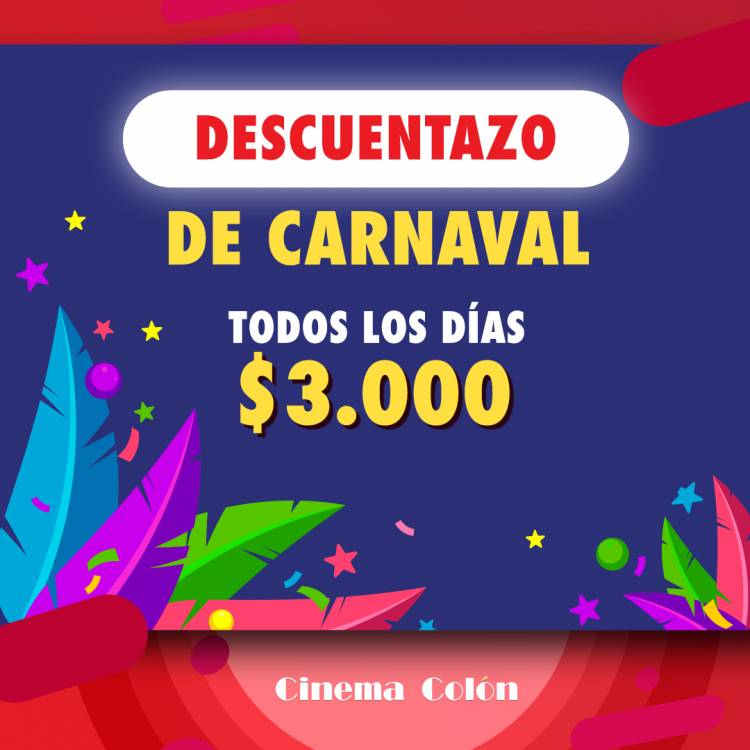 Esta semana Cinema Colon realiza un DESCUENTAZO DE CARNAVAL en el valor de las entradas en todas sus funciones, de todas las películas en cartelera.