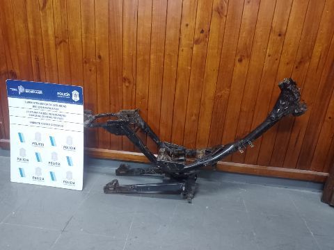 Los sujetos circulaban a bordo de una moto sin la patente colocada, y uno de ellos llevaba en sus manos un cuadro de moto que tenía la numeración suprimida.
