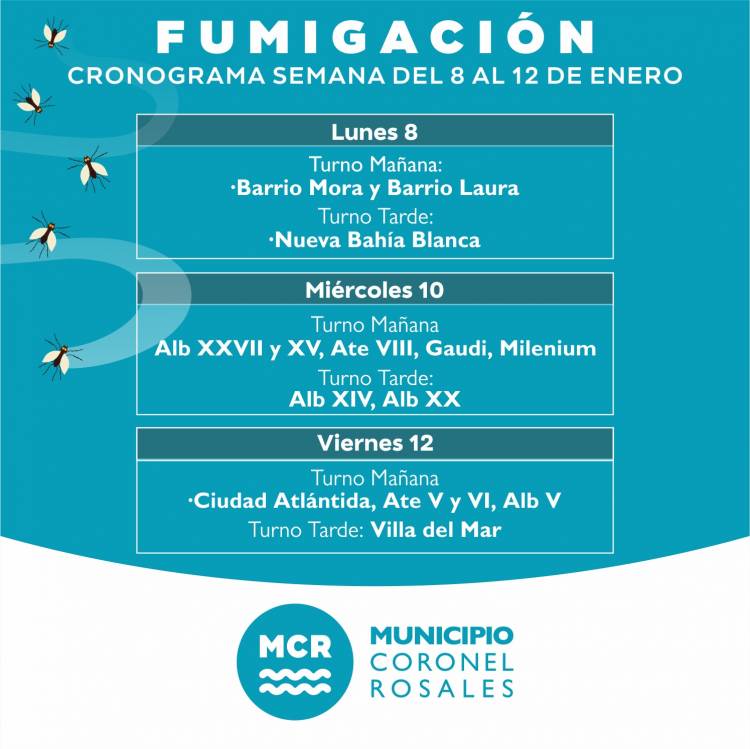 Este es el cronograma de fumigación para esta semana en Coronel Rosales