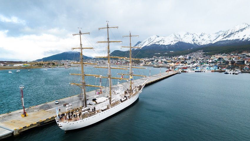 El buque escuela, al mando del Capitán de Navío Gonzalo Horacio Nieto, fue recibido por el Jefe de Estado Mayor del Área Naval Austral, Capitán de Navío Ángel Gustavo Vildoza, acompañado por el Subjefe de la Base Naval Ushuaia, Capitán de Fragata IM Luciano Gastón Gordillo, y el Jefe de Servicios Generales de la Base Naval Ushuaia, Capitán de Corbeta Pablo Román Bianco.
