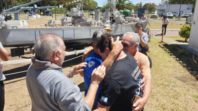 Gammella, en su arribo al Museo, se encontró con Blas Fernández, tripulante del Crucero, y ambos se fundieron en un emocionante abrazo.