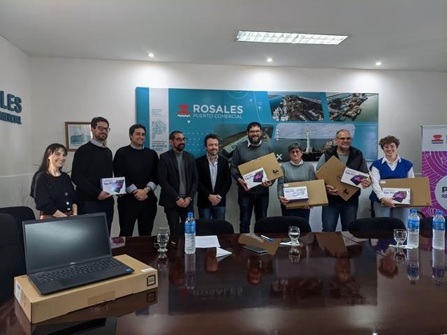 En la tarde de ayer, Rodrigo Aristimuño, en conjunto con el Subsecretario de Asuntos Portuarios, Juan Cruz Lucero y el Director Ejecutivo de VUCE (Ventanilla Unica de Comercio Exterior) Rodrigo Puértolas, hizo efectiva la entrega de equipo informatico para el personal de Puerto Rosales.