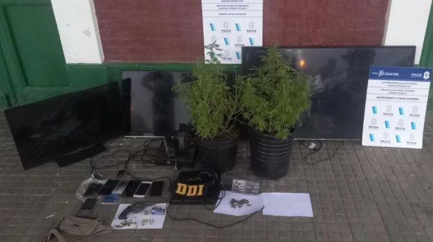 En el procedimiento policial, se incautaron un revólver calibre .22, municiones de diverso calibre, dos plantas de marihuana, una consola de videojuegos y dos televisores denunciados como robados entre febrero y marzo, además de otro televisor y otra consola de los cuales el imputado no pudo acreditar su propiedad.