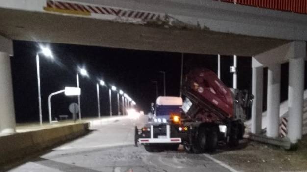 Un camión remolque que transportaba otro camión de gran altura terminó estrellándose contra el puente de la ruta 3.