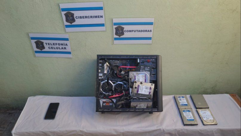 Personal de la División Cibercrimen Región Interior Sur Bahía Blanca secuestró computadoras, teléfonos celulares y otros elementos que serán peritados a fin de encontrar mayores elementos de interés para cada una de las causas.