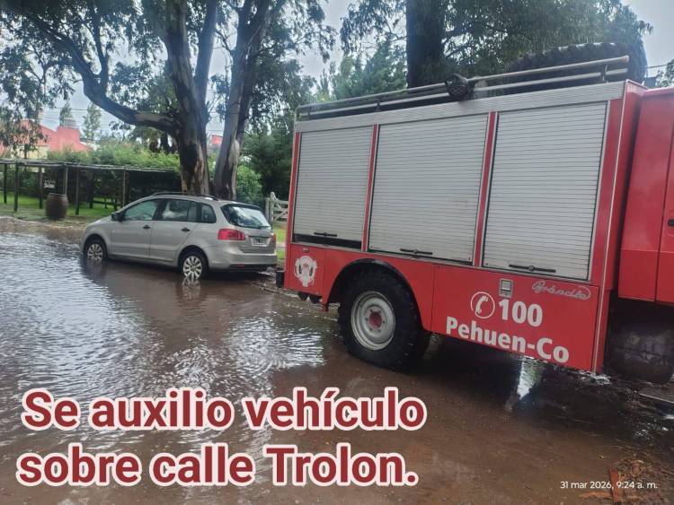 Asimismo los Bomberos Voluntarios de Pehuen Co debieron asistir a distintos llamados ocurridos durante la mañana, en uno de ellos brindaron auxilio a un vehículo varado sobre avenida Trolón, también realizaron corte de calles anegadas por el agua y cortes de ramas de gran tamaño que obstruían el paso por algunas arterias y presentaban un peligro para la comunidad.