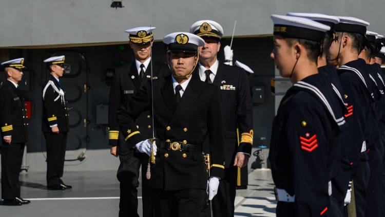 Una vez finalizada la ceremonia, se realizó una guardia de honor al Contraalmirante Suárez del Solar sobre la popa del JS “Kashima”, de la cual participaron el Embajador Yamauchi y distintas autoridades de la Armada Argentina.