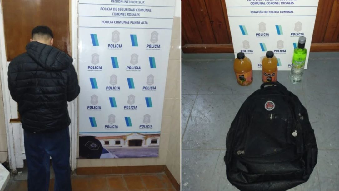 Allí, la policía capturó a Lucas Amaya, de 18 años de edad, quien se encontraba dentro del local y tenía en su poder dos botellas de jugo y una de vodka.