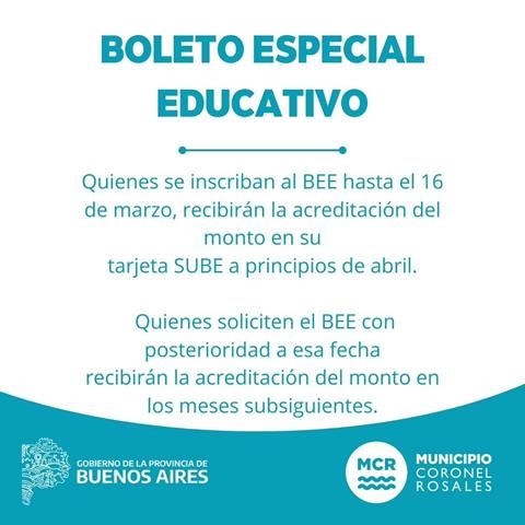 Consta de 45 pasajes mensuales, (al valor de la tarifa plena mínima vigente) en la carga de la tarjeta SUBE, para llegar a los establecimientos educativos.