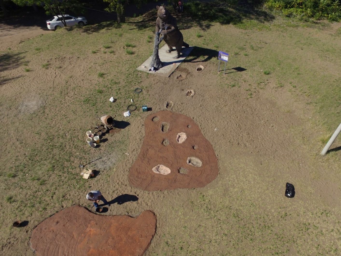 Y durante esta semana, se realizaron los trabajos de la construcción de las réplicas de las huellas y una muestra de una laguna seca, lugar donde estos animales dejaron inmortalizadas sus pisadas.