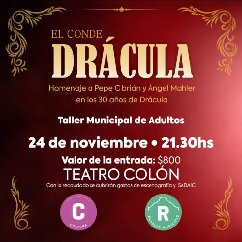 El próximo domingo 24 de noviembre, a las 21.30hs en el Teatro Colón, el Taller Municipal de Adultos, dependiente de la Dirección de Cultura de Rosales Municipio, presentará la obra “El conde Drácula” como cierre de sus actividades de este año 2022.