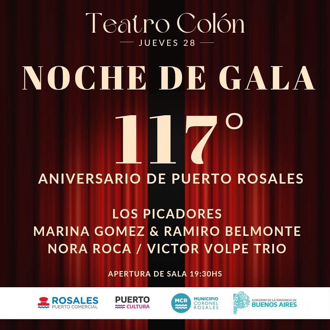 Para celebrar su cumpleaños 117, Puerto Rosales llevará a cabo distintas actividades abiertas a la comunidad. En ese marco, este jueves 28 de agosto, será la “Noche de Gala” en el Teatro Colón. Las entradas, gratuitas, están disponibles en boletería, de 10 a 12hs.