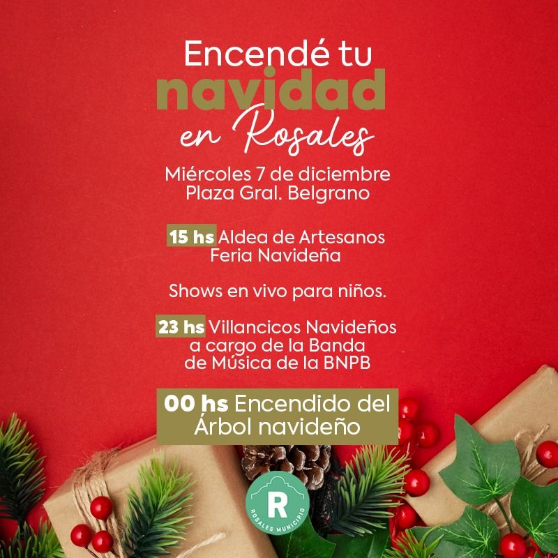 “Encendé tu Navidad en Rosales” Dará inicio a las 15hs con la feria navideña en la “Aldea de artesanos”, mientras que en el transcurso de la tarde habrá una gran cantidad de espectáculos para toda la familia.