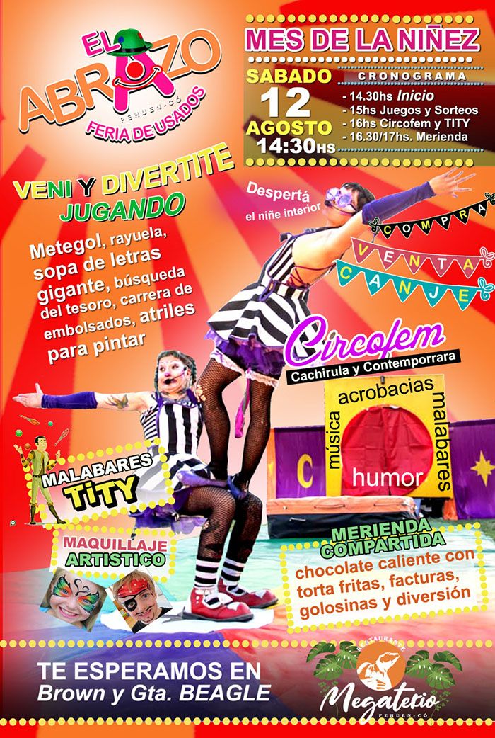 Este sábado 12 de agosto se celebrará el mes de la niñez, en la Feria de usados “El Abrazo Pehuen Co”, organizado en “Megaterio Restó”.