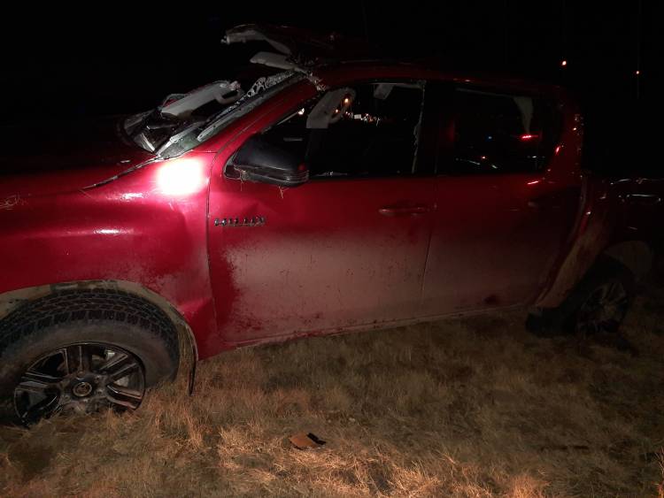 La Hilux al caer a un zanjón, volcó y sus tripulantes quedaron atrapados, mientras que la Amarok quedó a unos 300 metros.