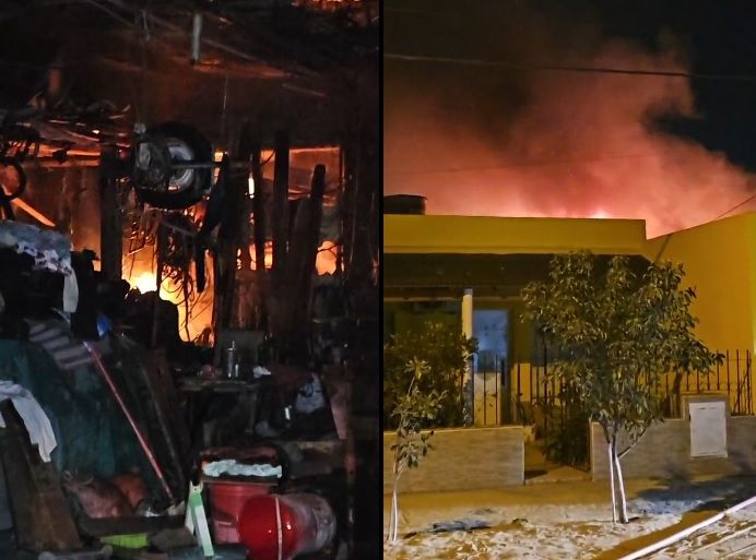 Impresionante incendio en un taller mecánico de Ciudad Atlántida