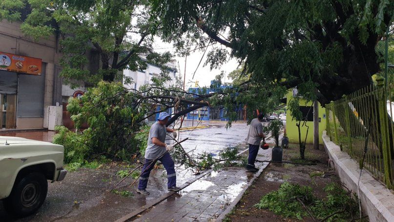Trabajó en el lugar personal de Forestación del Municipio para remover la rama y agentes de Tránsito de la comuna para controlar y derivar la circulación de vehículos y peatones por el sector.