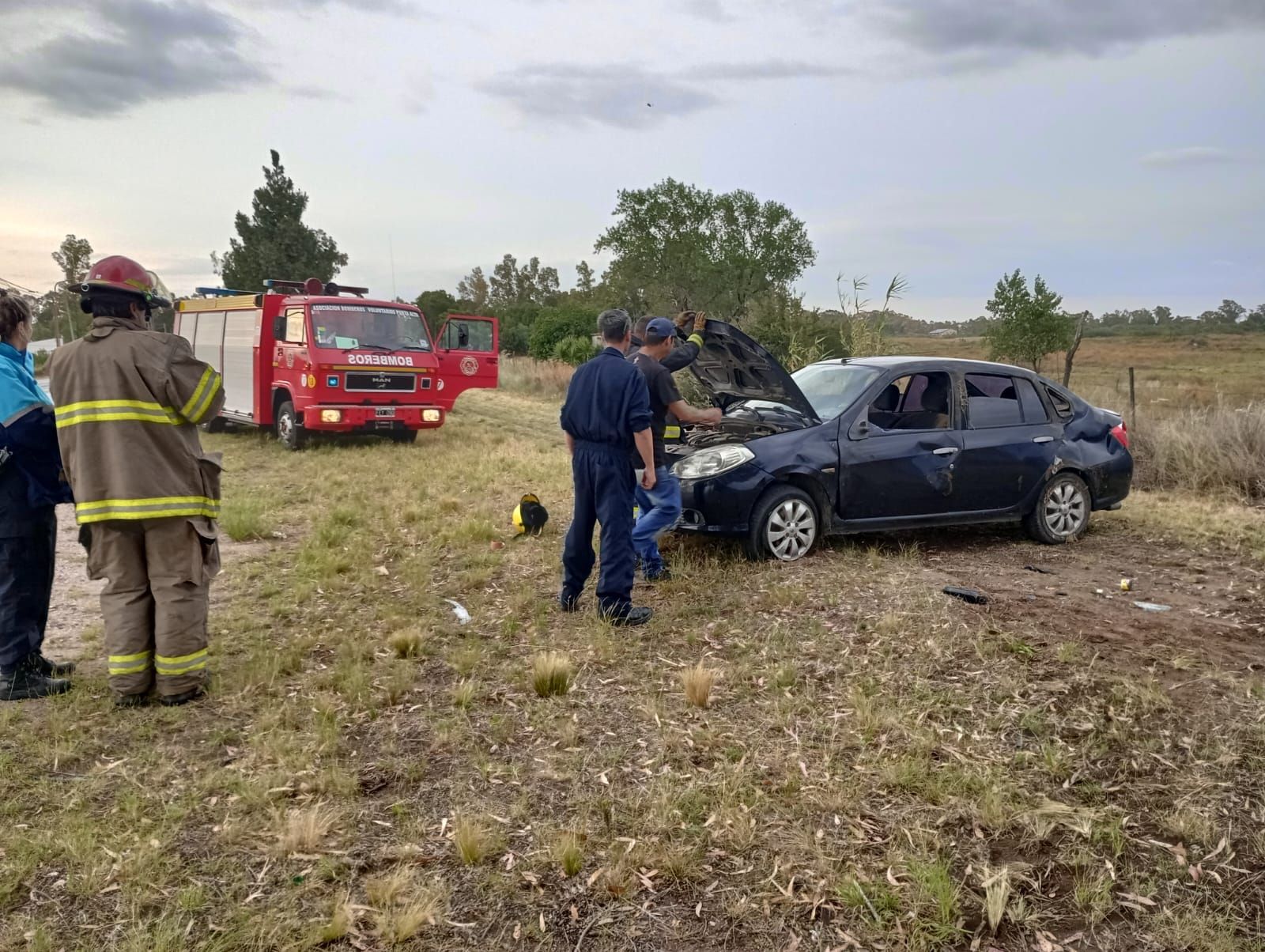 Policías y personal del SAME asistieron al conductor de un automóvil que volcó en la mañana de este sábado en la ruta 229 a la altura del aeroclub.