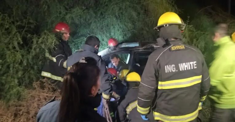 La conductora de un automóvil debió ser rescatada por los bomberos tras el despiste y choque que protagonizó en la mañana del domingo en la autovía de la ruta 3 cuando circulaba en sentido Bahía Blanca-Punta Alta.
