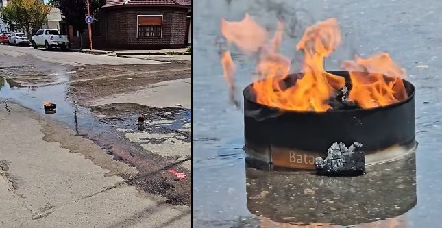 Un grupo de vecinos y comerciantes de esta transitada esquina de la ciudad prendieron fuego dentro de dos latas, para manifestarse en búsqueda de una solución de parte de la empresa ABSA y el Municipio “hartos de los desbordes cloacales”.