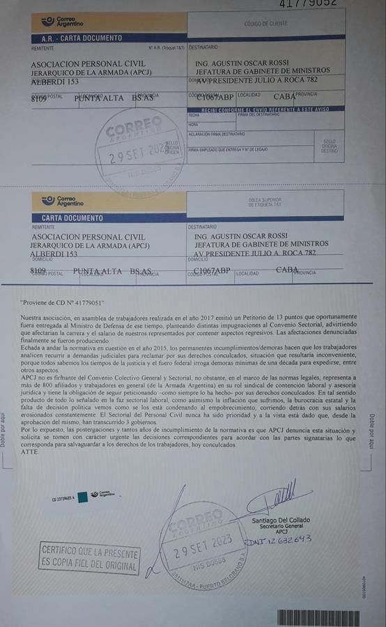 Desde APCJ, su Secretario General, Santiago Del Collado, ha comunicado que se han enviado cartas documentos al Jefe de Gabinete de Ministros, Ministro de Defensa y la Ministra de Trabajo.
