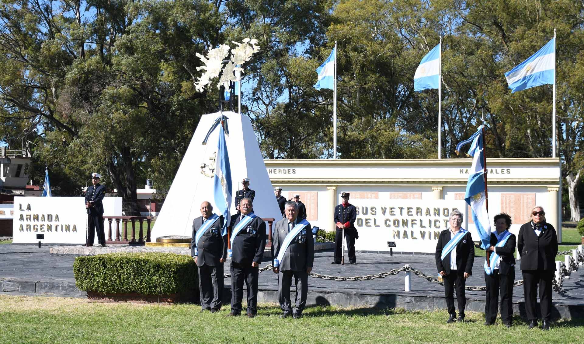 Concluidas las palabras, Veteranos de Guerra, autoridades militares y representantes de instituciones civiles y militares colocaron ofrendas florales en el monumento a los Caídos en Malvinas y rindieron homenaje con un toque de silencio.
