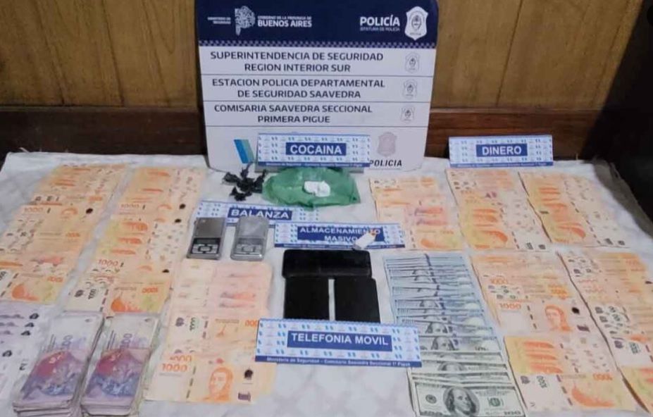 En el domicilio, ubicado en calle La Pampa 895, los efectivos procedieron con el secuestro de 5 envoltorios ( bochas) de cocaína, 2 trozos compactos de cocaína, arrojando un pesaje total de 35 gramos, 2 balanzas de precisión con restos de cocaína, recortes circulares de bolsas de nylon, 2 chips, 3 teléfonos celulares, 3100 dólares, 630 mil pesos y un auto Renault Clio.