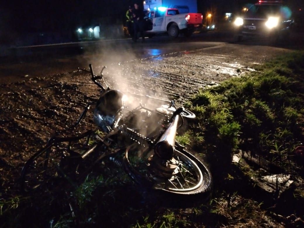 Una mujer de 39 años que circulaba en moto por la ruta 3 km 690, atropelló a un perro y su vehículo se prendió fuego después de la caída.
